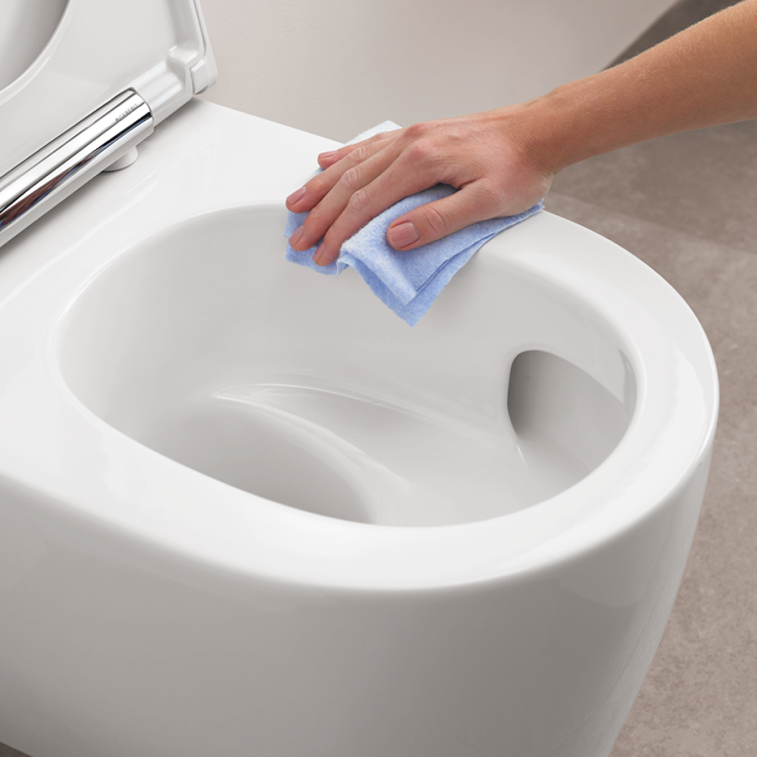 Voor een optimale wc-hygiëne zit die vervelende spoelrand altijd weer in de weg. Daaronder krijgen bacteriën en vuil vrij spel, terwijl het lastig schoonmaken is. Geberit wc's met TurboFlush spoeltechnologie zijn spoelrandloos. Dat betekent minder vuilophoping en meer schoonmaakgemak.